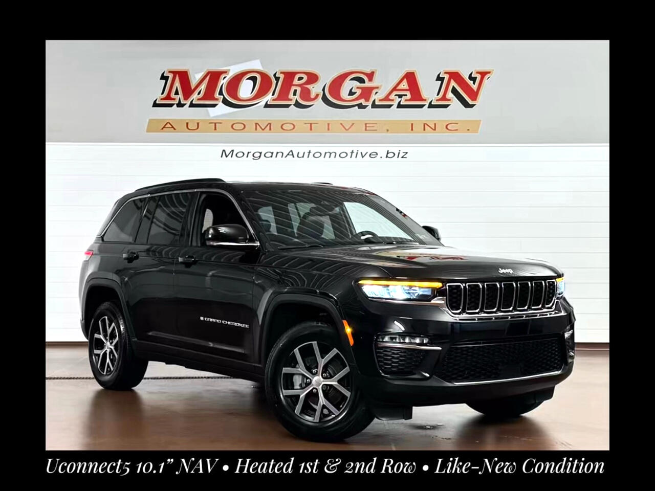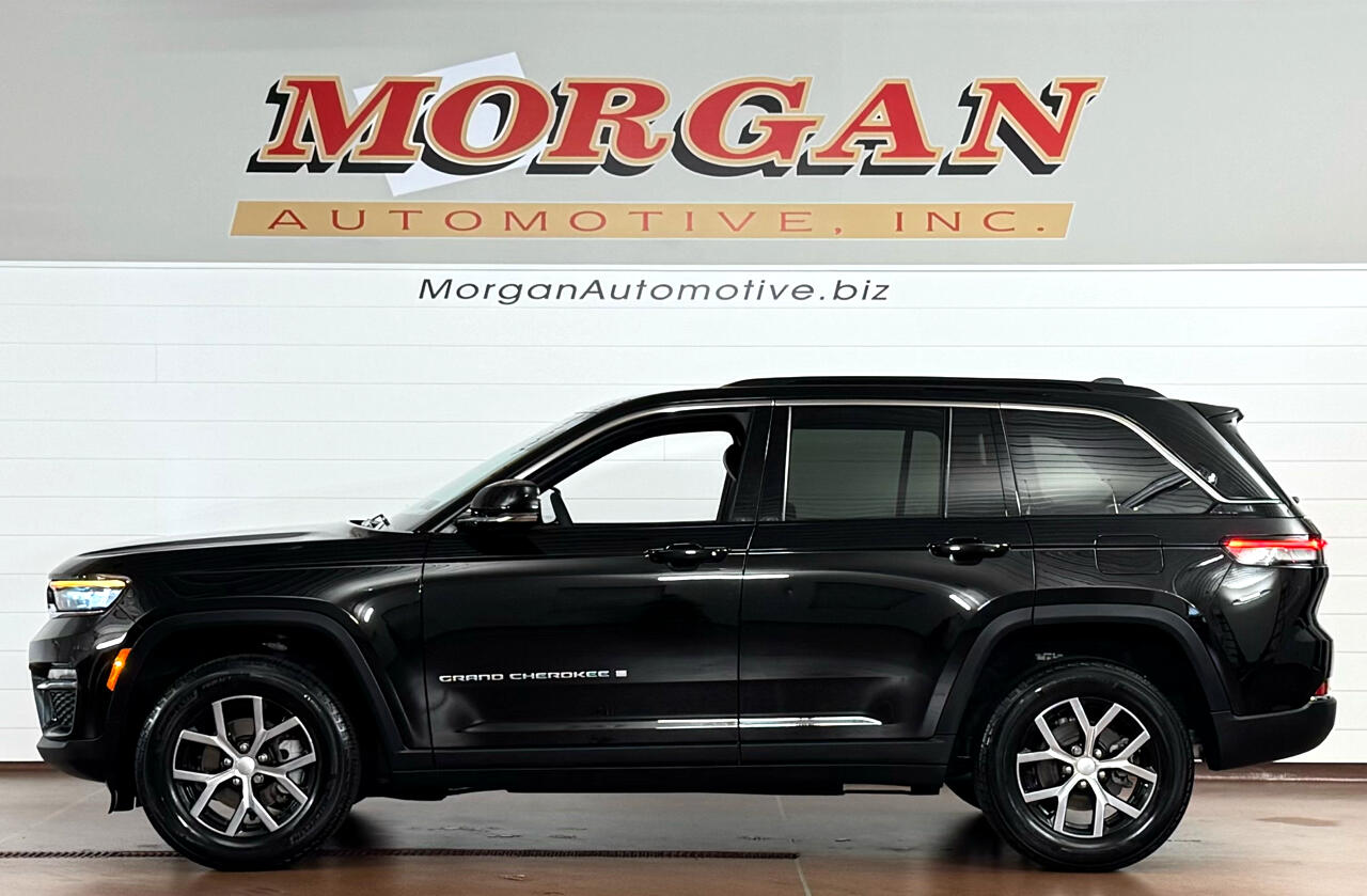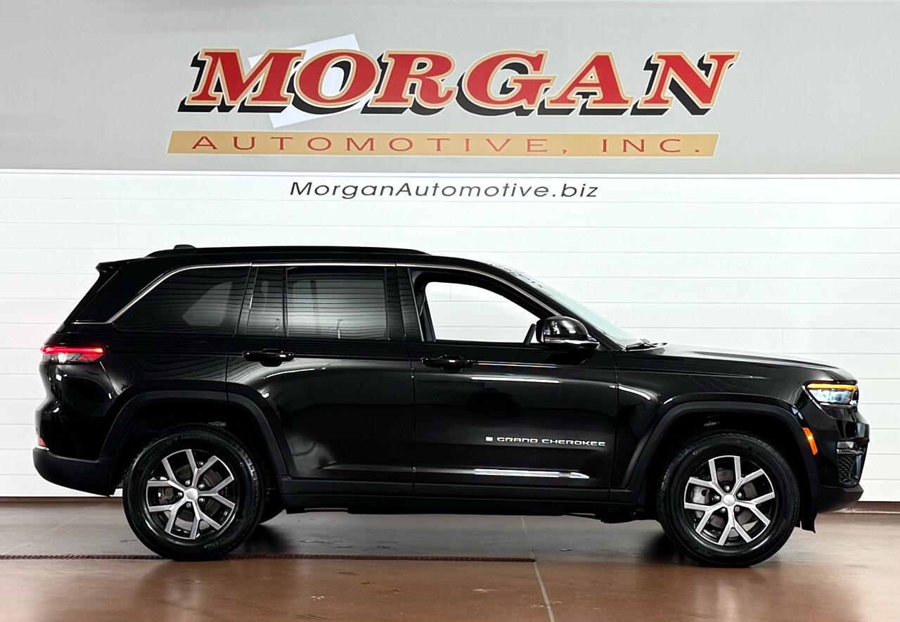 LIKE-NEW CONDITION!!Now available at Morgan Automotive, the 2024 Jeep Grand Cherokee Limited 4x4 in sleek Diamond Black Crystal Pearl delivers a refined blend of rugged capability and upscale comfort. With its bold seven-slot grille, LED headlamps and taillamps, 18-inch polished aluminum wheels, chrome accents, and gloss black roof rails, this SUV commands attention from every angle. Under the hood, a responsive 3.6L Pentastar V6 engine paired with an 8-speed automatic transmission and Jeep’s Quadra-Trac I 4WD system ensures confident performance in all conditions. Step inside the premium cabin to discover leather-trimmed heated front and rear seats, a heated steering wheel, power-adjustable front seats with driver memory, dual-zone automatic climate control, and a 10.1-inch Uconnect 5 infotainment system with built-in navigation, Apple CarPlay, and Android Auto. Other premium touches include a digital instrument cluster, and remote vehicle start. Safety is front and center with a suite of advanced technologies including Adaptive Cruise Control, Blind Spot Monitoring with Rear Cross Path Detection, Forward Collision Warning with Active Braking, Lane Management System, ParkView rear backup camera with ParkSense® front and rear park assist, and Rear Seat Reminder Alert. Designed for families, adventurers, and professionals alike, this Grand Cherokee Limited 4x4 offers legendary Jeep capability wrapped in first-class comfort — only at Morgan Automotive! Vehicle was just fully serviced including fresh inspection, fresh oil along with our multi point check sheet. Vehicle is covered under the remaining balance of factory warranty.