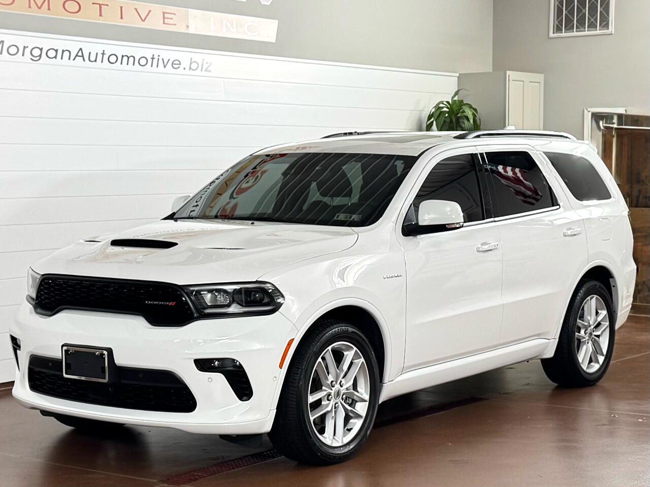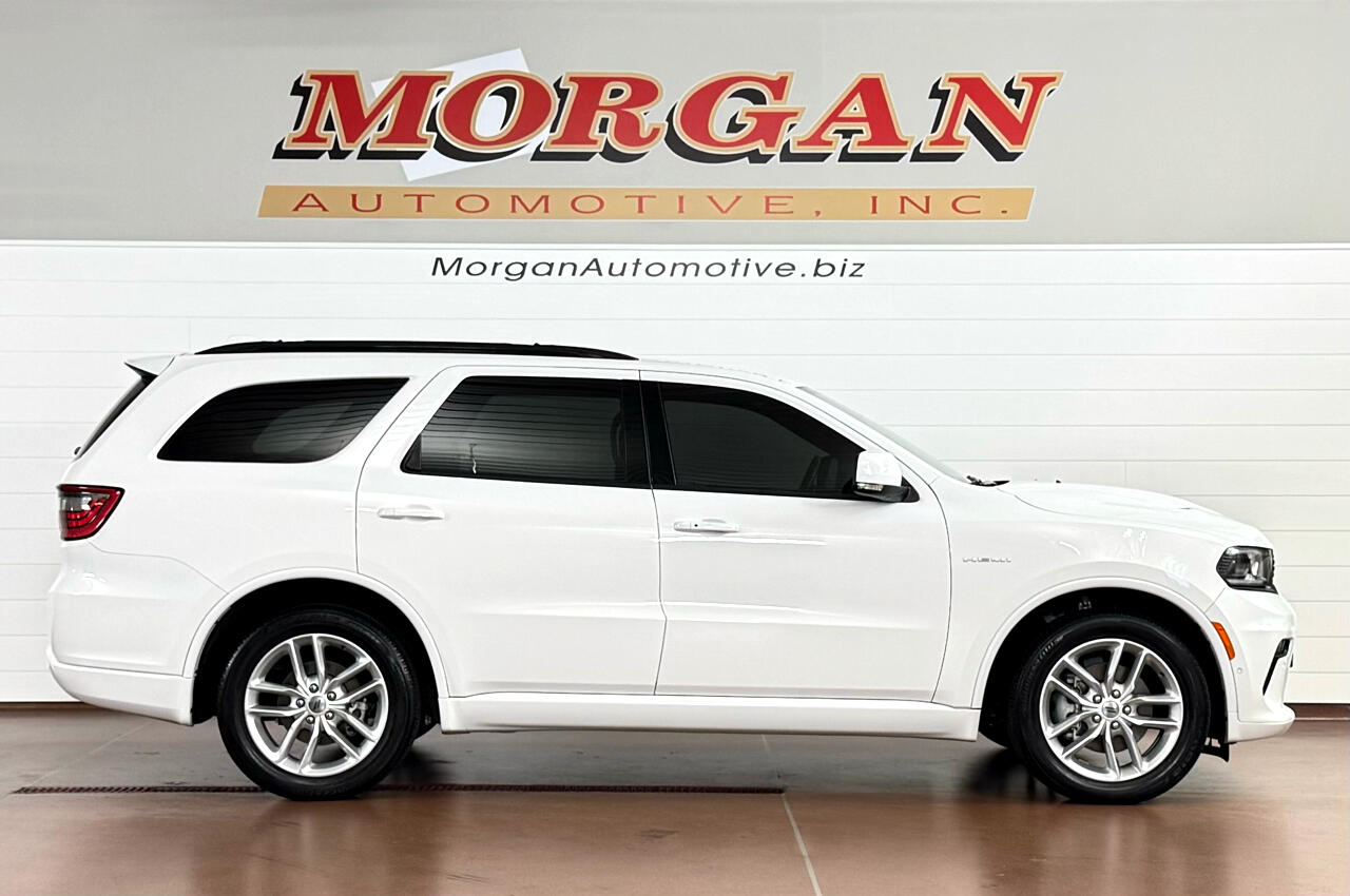 Commanding style meets muscle in this 2022 Dodge Durango R/T Plus AWD in White Knuckle now available at Morgan Automotive, equipped with the Customer Preferred Package 22C for added refinement and convenience. Under the hood, the legendary 5.7L HEMI V8 delivers exhilarating performance, while the bold exterior is highlighted by LED headlamps and taillamps, a performance hood, power liftgate, 20-inch aluminum wheels, and sporty R/T badging. Inside, the R/T Plus elevates comfort with heated and ventilated Nappa leather-trimmed front seats, heated second-row seats, a heated steering wheel, power sunroof, wireless charging pad, suede headliner and a premium Harman Kardon audio system. Technology is front and center with the 10.1-inch Uconnect touchscreen, navigation, Apple CarPlay, Android Auto, and available Amazon Alexa integration. Safety and confidence come standard with Adaptive Cruise Control, Blind-Spot Monitoring, Rear Cross-Path Detection, ParkSense front and rear park assist, Advanced Brake Assist, and Lane Departure Warning. Rugged, powerful, and luxuriously equipped, this Durango R/T Plus delivers the perfect balance of muscle and family-ready versatility. Vehicle was just fully serviced including fresh inspection, fresh oil along with our multi point check sheet. Vehicle is covered under the remaining balance of factory warranty.*Price may have changed. Please visit our website for most up to date price.* ALL VEHICLES COME WITH THE “MORGAN PROMISE” MEANING ALL VEHICLES THAT WE SELL WILL HAVE AT LEAST 50% TIRE LIFE, 50% BRAKE LIFE, AND A WARRANTY APPLIED. ALL WARRANTIES CAN BE UPGRADED THROUGH PROGUARD AT TIME OF PURCHASE. FOR MORE INFORMATION PLEASE CONTACT OUR COMMISSION FREE SALES TEAM TODAY AT SALES@MORGANAUTOMOTIVE.BIZ OR BY CALLING 717-664-3833