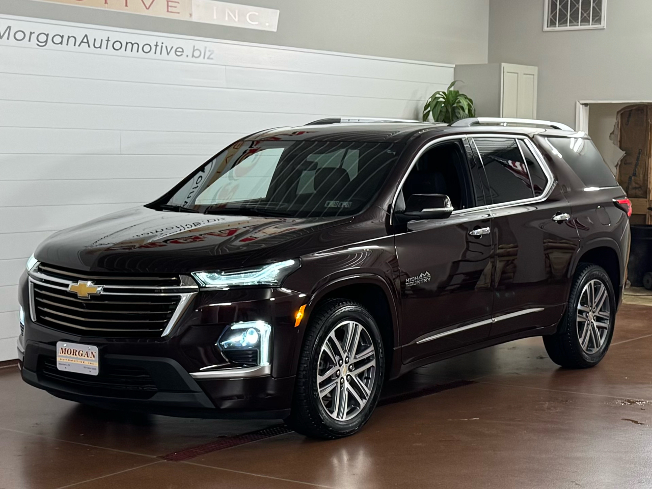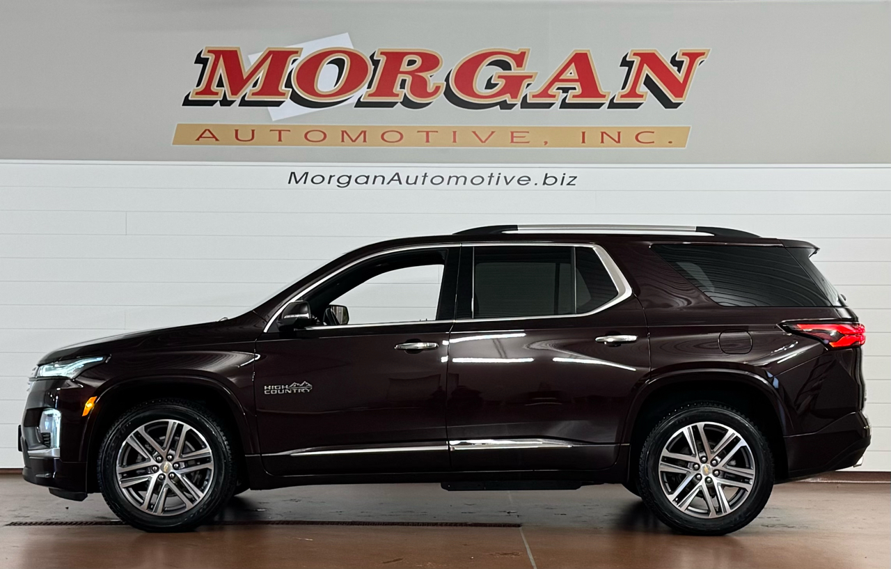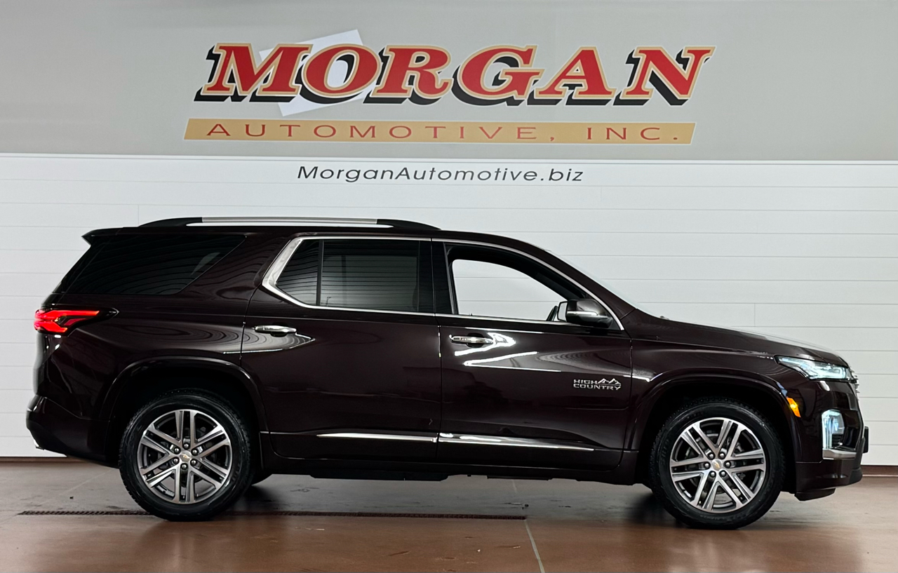 1-OWNER VEHICLE!!Now available at Morgan Automotive, the striking 2022 Chevrolet Traverse High Country AWD in deep Black Cherry Metallic is the premium three-row crossover built for comfort, capability, and luxury. Under the hood you get the potent 3.6-liter V6 producing 310 horsepower, mated to a smooth 9-speed automatic and full-time AWD, giving you confident traction in all road conditions. On the outside, this High Country shines with LED headlights and taillights, a dual-panel SkyScape panoramic sunroof, polished 20-inch aluminum wheels, body-color heated power side mirrors with memory and auto-dimming on the driver side, a hands-free power liftgate, and tasteful chrome accents with deep-tinted glass. Inside, you’ll find premium perforated leather seats with both heating and ventilation up front, power-folding third-row bench, multi-zone climate control, a heated leather-wrapped steering wheel, driver seat memory settings, wireless phone charging, and a Bluetooth/Aux/USB/Ameren-style infotainment system upgraded with navigation and a premium Bose 10-speaker audio setup. Safety comes fully equipped with features like blind-spot monitoring, rear cross-traffic alert, lane keep assist, automatic emergency braking, and a surround-view camera system. Elegant, powerful, and loaded with luxury, this Traverse High Country is everything you want in a family SUV and more. Vehicle was just fully serviced including fresh inspection, fresh oil along with our multi point check sheet. Vehicle is covered under the remaining balance of factory warranty. *Price may have changed. Please visit our website for most up to date price.* ALL VEHICLES COME WITH THE “MORGAN PROMISE” MEANING ALL VEHICLES THAT WE SELL WILL HAVE AT LEAST 50% TIRE LIFE, 50% BRAKE LIFE, AND A WARRANTY APPLIED. ALL WARRANTIES CAN BE UPGRADED THROUGH PROGUARD AT TIME OF PURCHASE. FOR MORE INFORMATION PLEASE CONTACT OUR COMMISSION FREE SALES TEAM TODAY AT SALES@MORGANAUTOMOTIVE.BIZ OR BY CALLING 717-664-3833